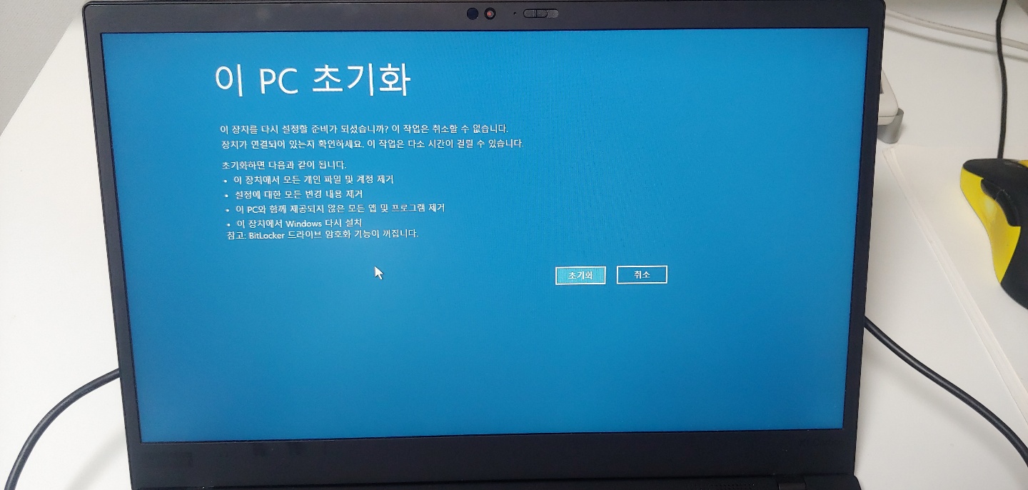 레노버 씽크패드 X1 카본 7세대( Lenovo Thinkpad X1 Carbon 7th ) 기준으로 윈도우 초기화 방법을 작성한다.
